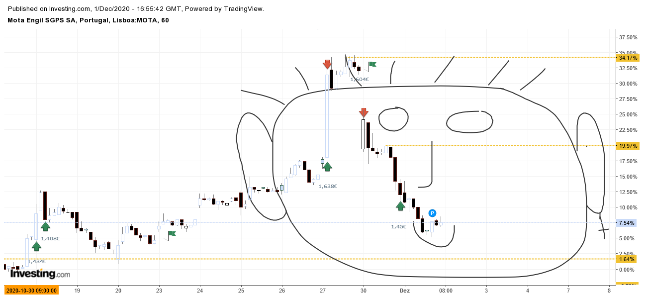 A perninha para baixo vai ser cerca de 50% da variação de hoje, com teste aos 1,374€ junto a minimos da sessão.