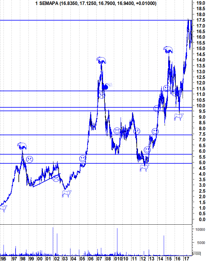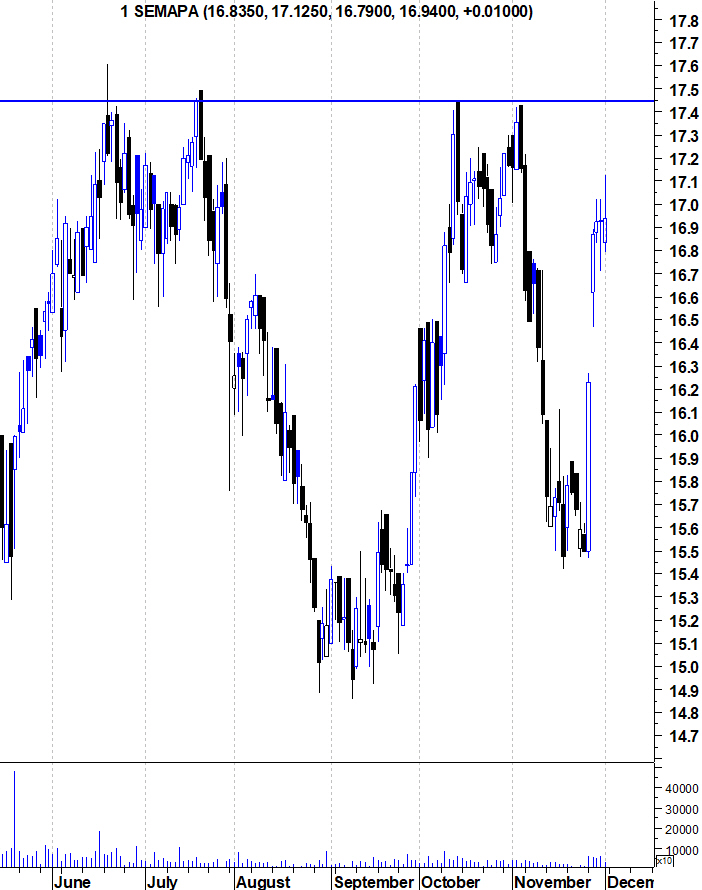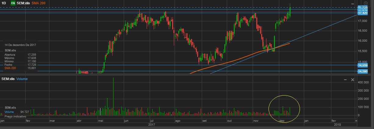 Bar, deixo-te os gráficos actualizados onde podes ver qual foi o volume dos últimos dias. A acção mantém o seu "Bull Market" mas as subidas fortes dos últimos dias e o aproximar da sua resistência dos 17,45 colocam ali alguns obstáculos no curto prazo.