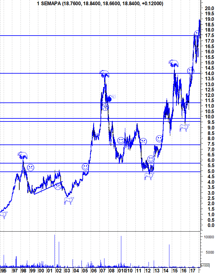 Panchito, está-te a escapar algo de básico: ao valor das participações tens que retirar a dívida da Holding, que terminou 2017 nos 552.1 M€, i. e., 6.84 € por ação Semapa!