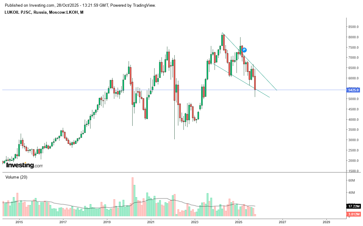 Ainda relativo á Lukoil foi dos poucos titulos que fez novos máximos durante a guerra e tem um padrão bulish em formação.