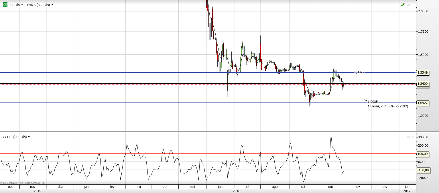 Continuo a apostar numa recuperação da cotação até ao dia 9 de Novembro, dia da entrada da Fosum no capital do BCP... e também em alguma possível surpresa de alguém que se queira antecipar aos chineses. Já falta pouco para saber o que vai acontecer.