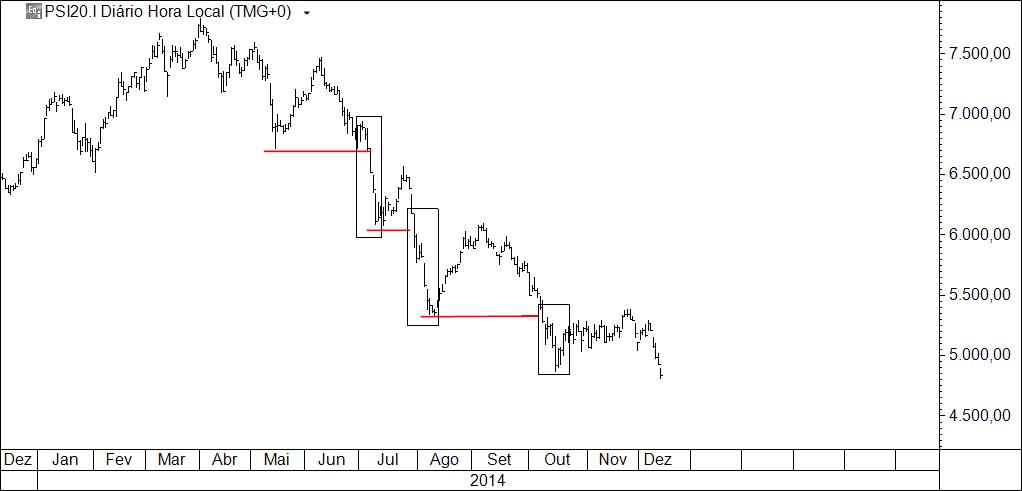 Estarei bear enquanto o movimento iniciado nos finais de março deste ano terminar, até já apresentei uma zona alvo, apesar de prematura. Discordei de muitos quando vaticinavam que as quedas tinham terminado no mínimo realizado em meados de outubro.