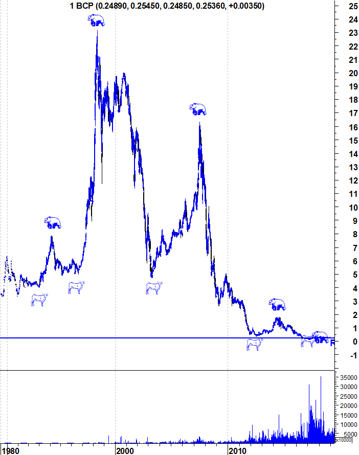 A minha pergunta é: porque é que não fizeram um aumento de capital? Não era muito mais barato para o banco e não seria muito mais lógico? Pois é, só que o BCP já está farto de fazer aumentos de capital, como todos bem sabem... Assim, optaram por uma solução cara, mas que protegesse mais a imagem do banco. Agora, a verdade é que o banco continua a precisar de capital para fazer a sua gestão de dia-a-dia e isso mostra algumas fragilidades. E a cotação continua a não subir, mais um dia... Começa a ser de prever muita gente stopada depois de ter comprado a 0,25€... vamos ver.....