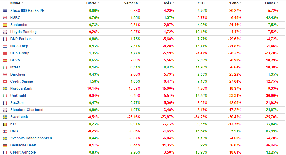 Agora só os pesos pesados do stoxx 600 banks (+/- 60%, por ordem decrescente de peso)