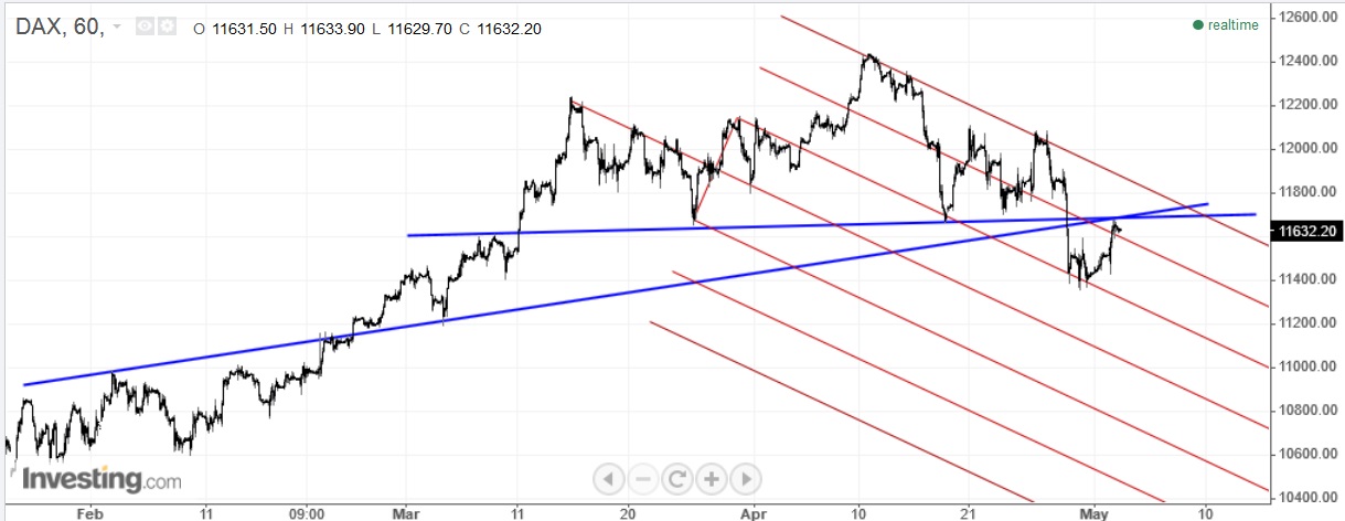 a fork original que foi criada para esta lateralização do DAX ainda em início de Abril, juntamente com as WL's do Chico, continua a parecer-me, de longe, a mais coerente com o preço. voltei a colocá-la no gráfico e a imagem fala por si. por outro lado, a UMLH parece uma daquelas linhas únicas que até agora não cedeu.