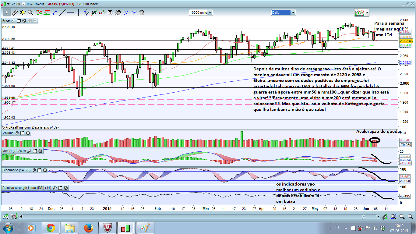 O dax está a entrar na zona do target da bandeira, o sp numa zona de suporte.