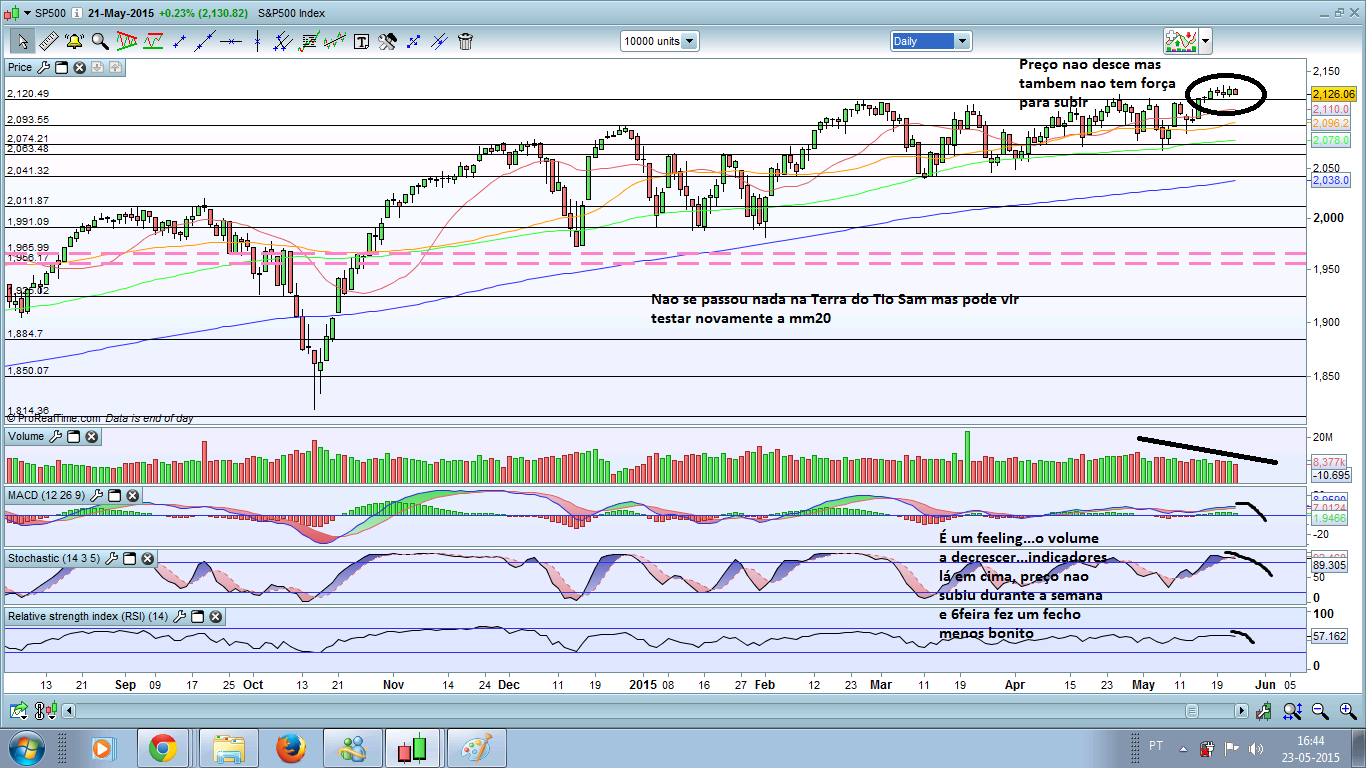 Muito pouca força esta semana no SP500...acabando a earnings season...e a volatilidade no EUR/USD e no petrol a terminar ou diminuir pode levar isto para outra direccao.