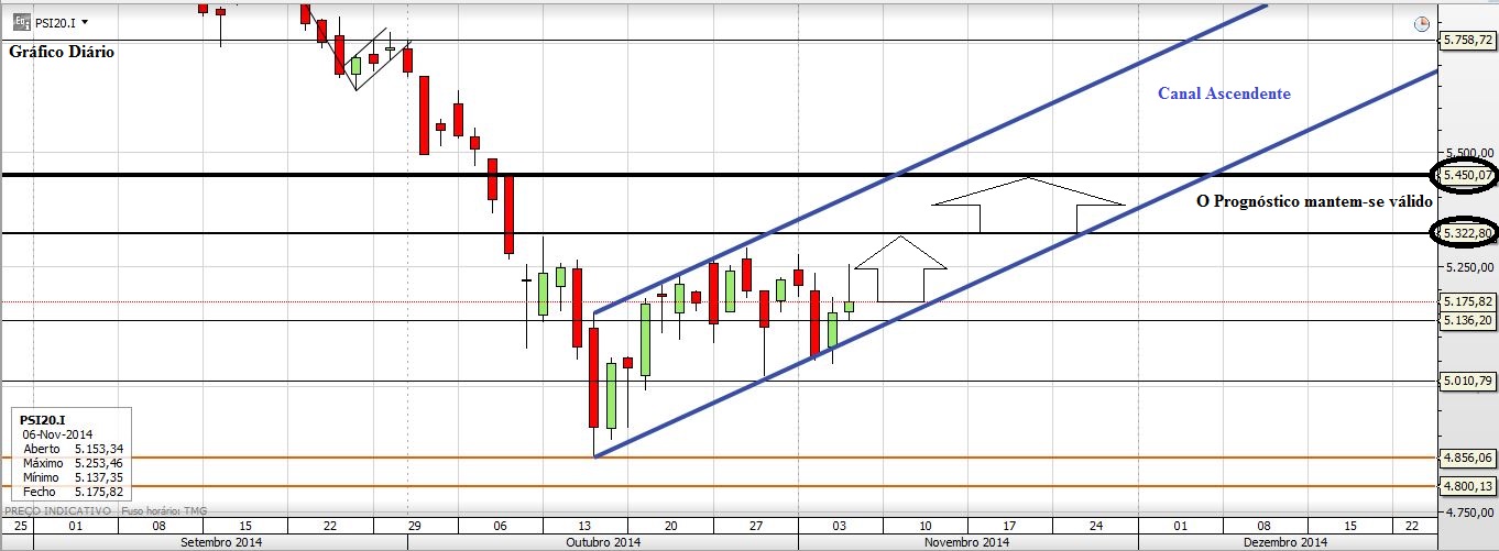 Realmente a resistência está bem identificada e caso os 5280pts (mais coisa menos coisa) deixarem de bloquear o PSI, então acredito que o "ressalto" possa ser à séria tal como se pode observar no CAC, DAX, etc.
