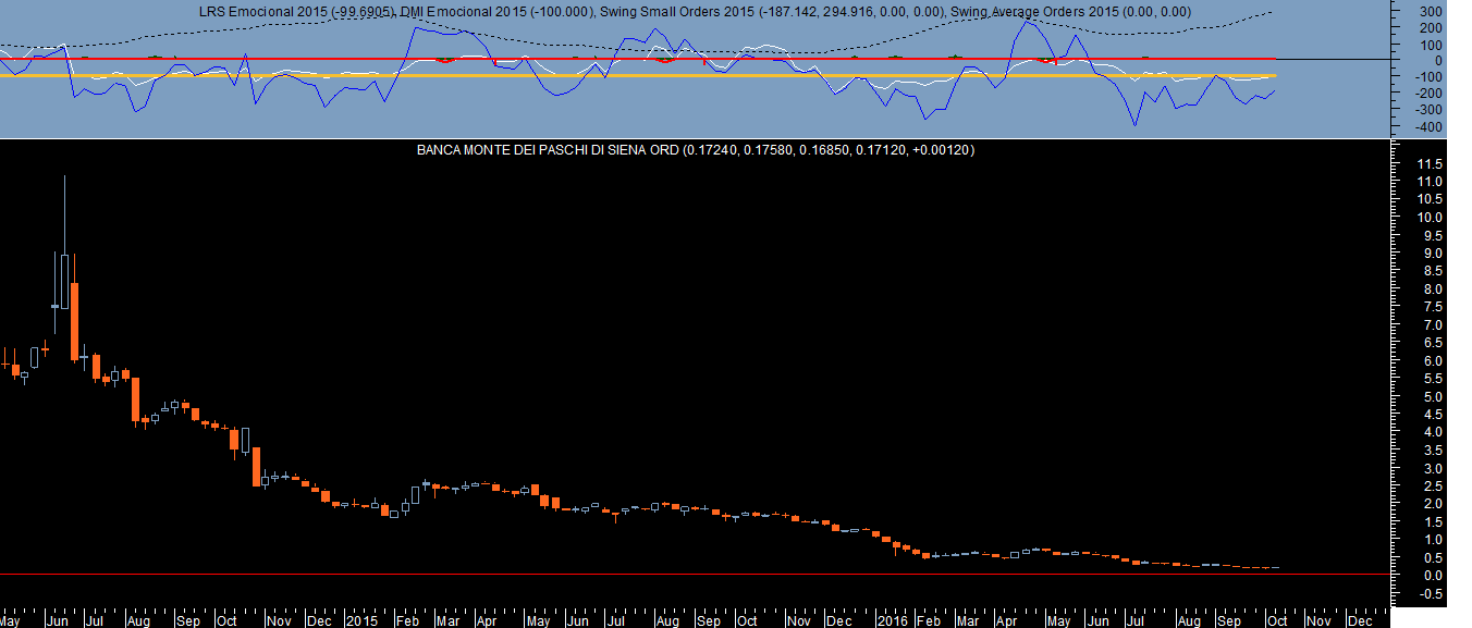 Este Banco italiano, concretamente refiro-me à instituiçao financeira considearda a mais antiga do mundo que dá pelo nome de Banca Monte dei Paschi di Siena, há cerca de 2 anos atrás valia 11.11 €, ou seja, 65 vezes mais do que o seu valor atual (0.1712 €).