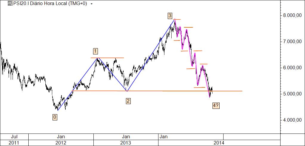 Até lá, continuo a defender a contagem que indica que estamos na W5 of 5, podendo levar a um novo mínimo, a não ser que seja truncada.