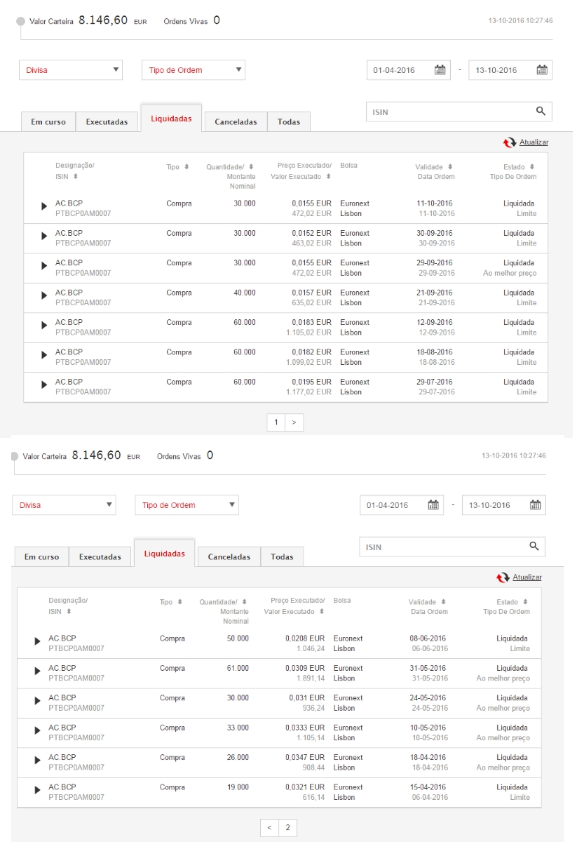 Dei conta, em "tempo real", no Fórum, das minhas compras e da minha venda de ações do BCP, realizadas neste mês.