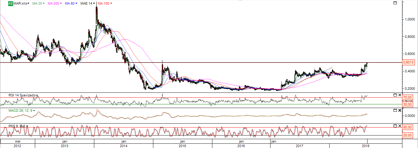 A Martifer fez um bom fecho quase em máximos de sessão. Fez um fecho diário e semanal em máximos de 4 anos.