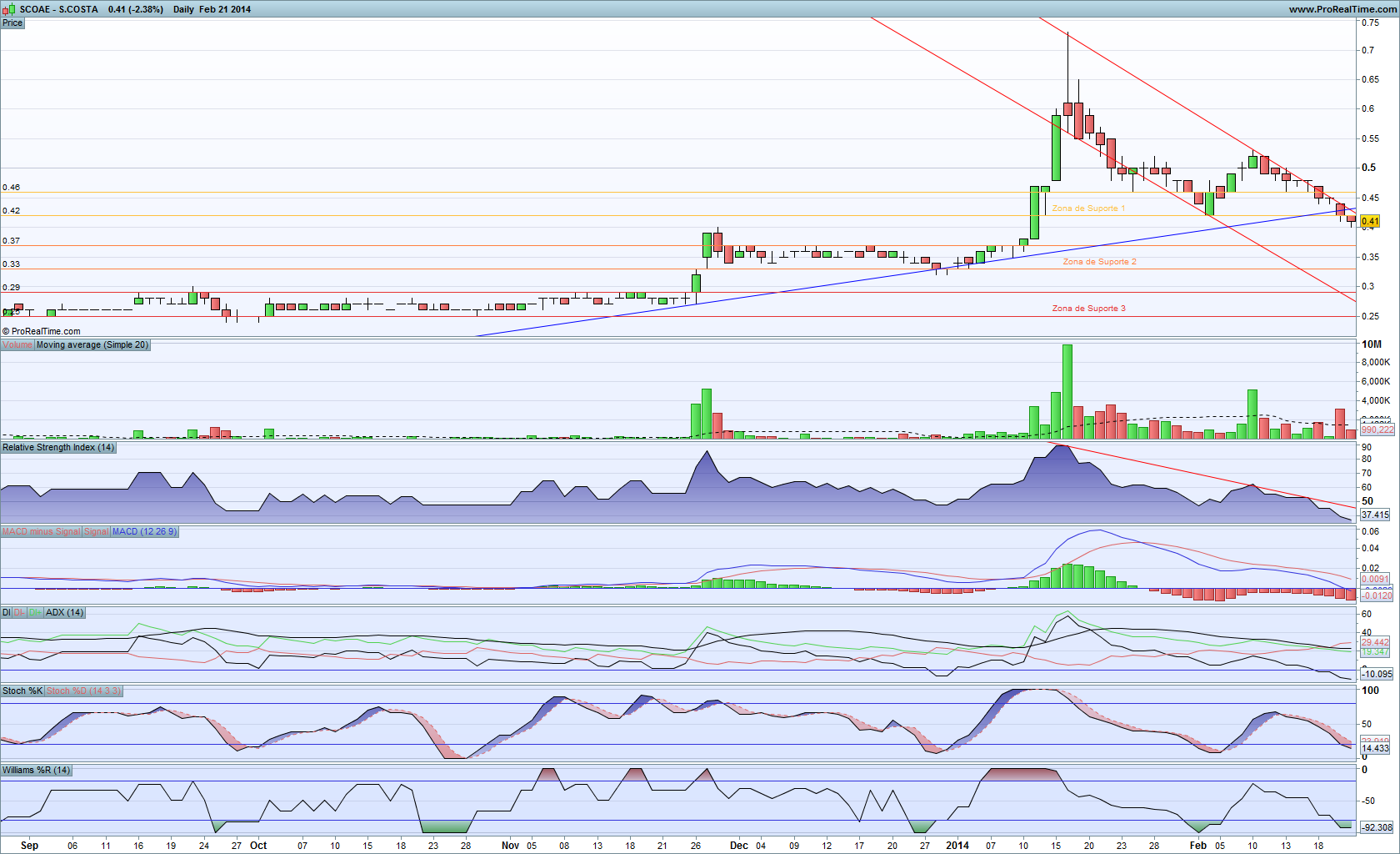 Perdoem-me, mas não existe nenhum suporte a 0.40, o preço estancou aí, hoje...
