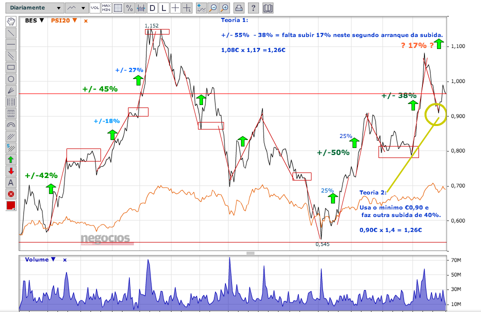 O BES teve esse padrão durante a descida (depois do aumento de capital) e tem tido a mesma sequencia, o mesmo padrão agora na subida.