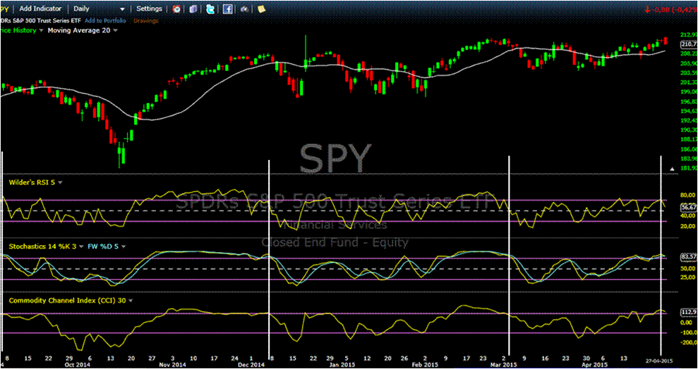Dois gráficos diários (SPY) para gostos diferentes. O primeiro, com suporte, anterior resistência, localizada no (R1 210.65) a servir de ai aguenta, aguenta, ou não !!! O segundo, mais elaborado, a merecer especial atenção da minha parte, com sintonia de indicadores a posicionarem-se para, bye bye Maria Ivone.