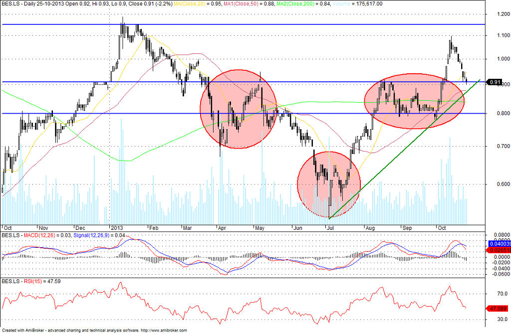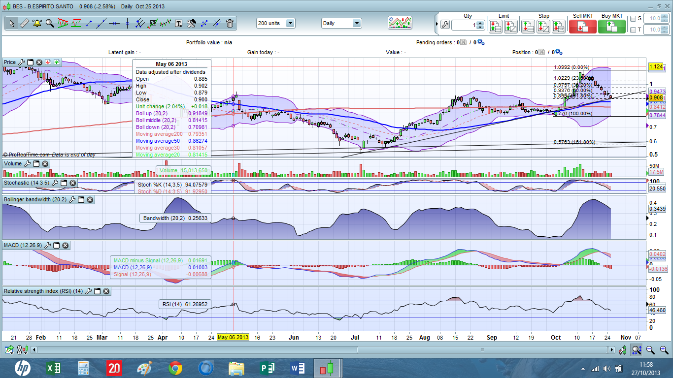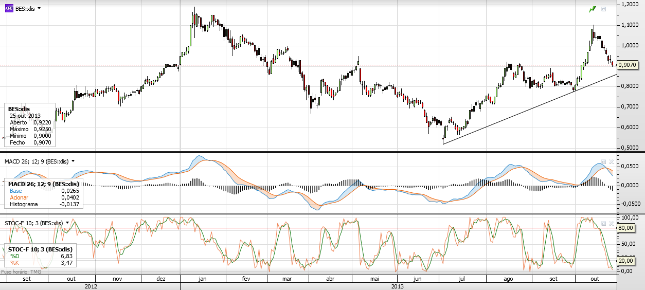 Por outro lado, com a apresentação de resultados do BES e com todo o cenário de incerteza que se está a criar à volta do orçamento de 2014, o que nos pode conduzir a um eventual 2 resgate, não estou propriamente a ver condições para grandes arrancadas.