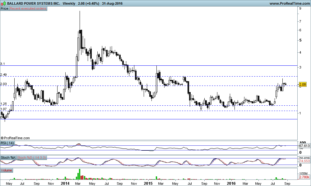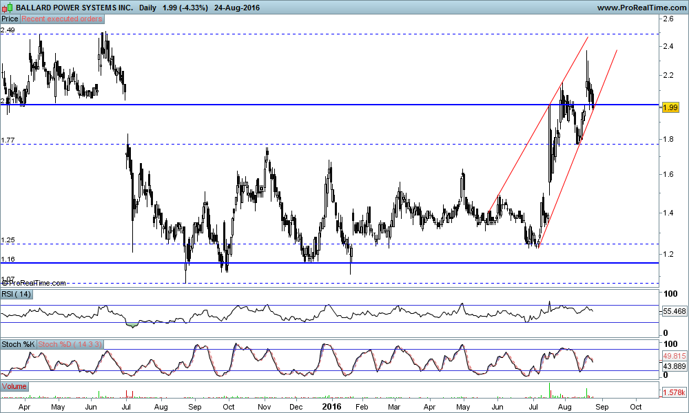 A Ballard tem dados sucessivos sinais de força nos últimos tempos, está a corrigir das recentes subidas e uma aproximação ao suporte dos 2,45/50$ pode justificar uma entrada/reforço.