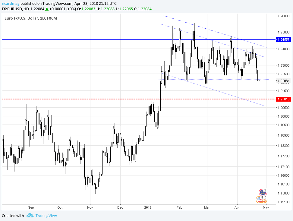 EUR/USD manda comprar, curto só fecho abaixo de 1.2190.