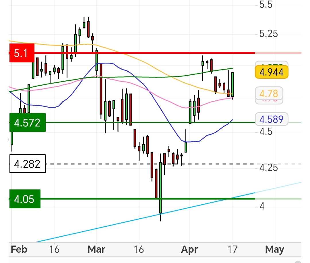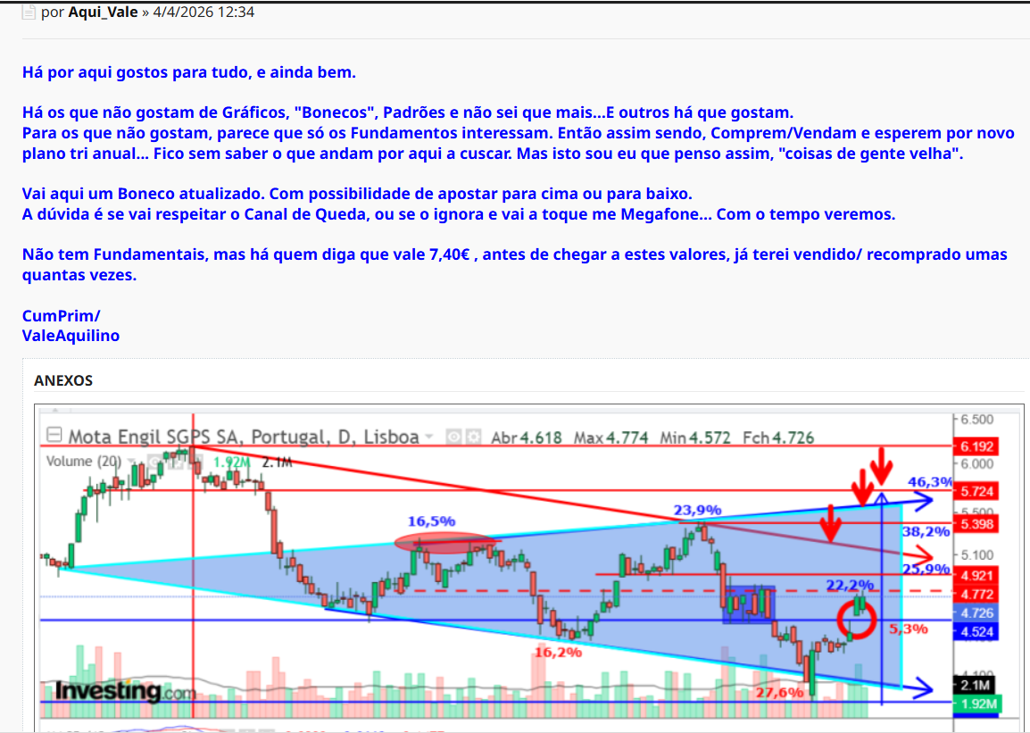 Vim aqui ao forum da Mota na expectatifa de ver os comentarios e os graficos dos detratores e negacionistas, masxpara meu espanto nem comentarios nem graficos dos que apontavam para uma queda entre os 3,50/ 3,25 , eu continuo a acreditar na subida 5 feira reforçei com mais algumas a 4,766