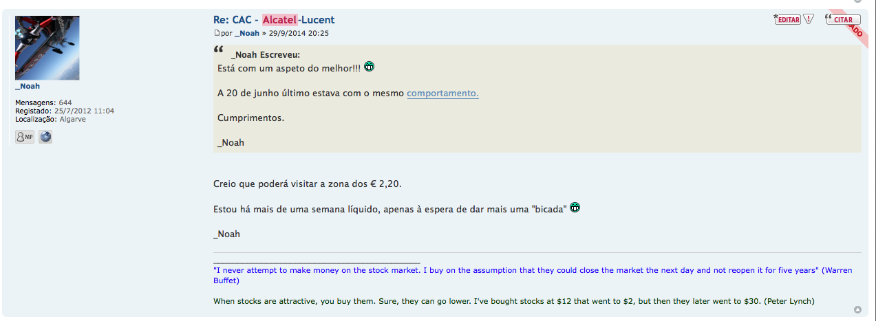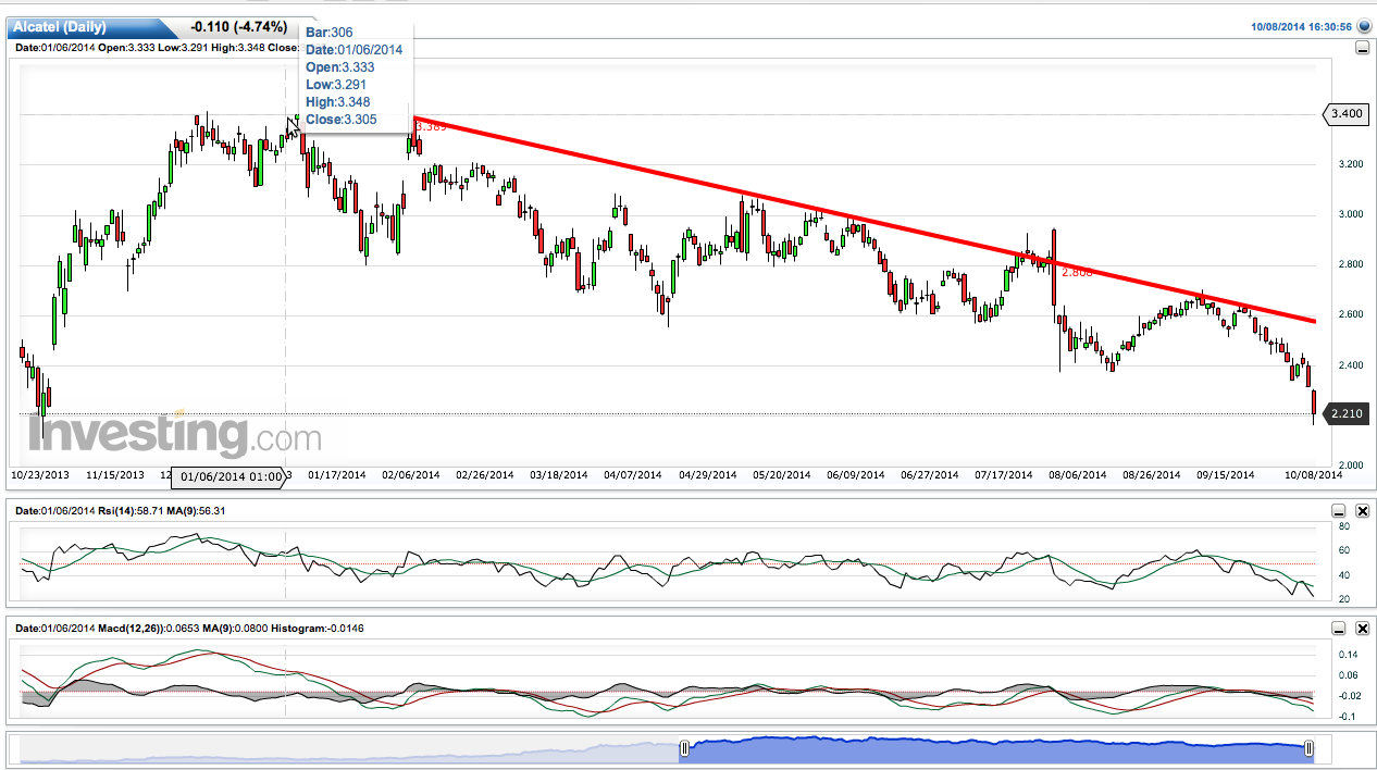 Na altura eu referi os 2,2 como valor e que só estaria disposto a um investimento se o mercado levasse o preço da Alcatel a dar-me um desconto em relação ao valor que eu defeni. Portanto tem que vir abaixo de 2,2 euros para me fazerem entrar.