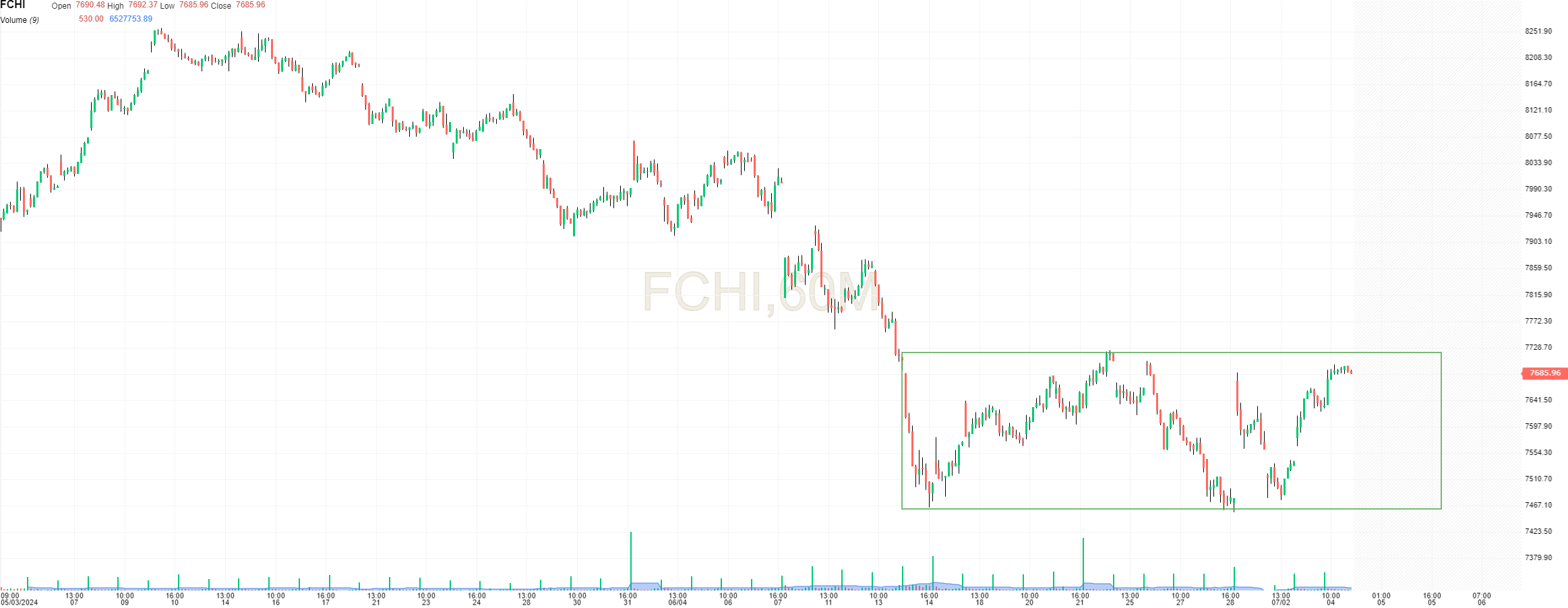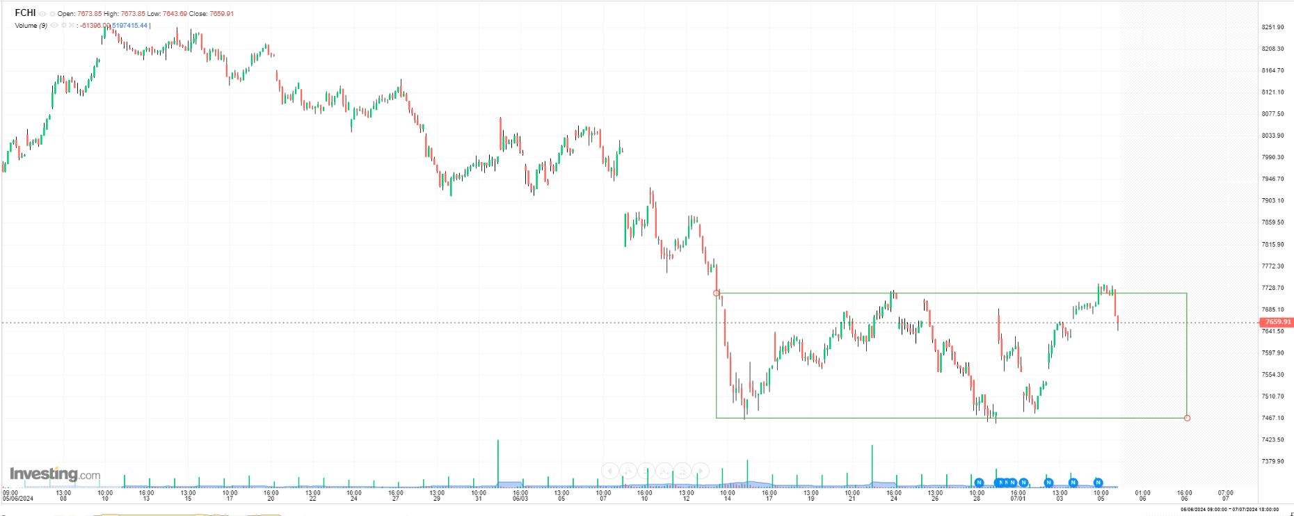 O target do triangulo simétrico deve ficar entre os 7750-7828.