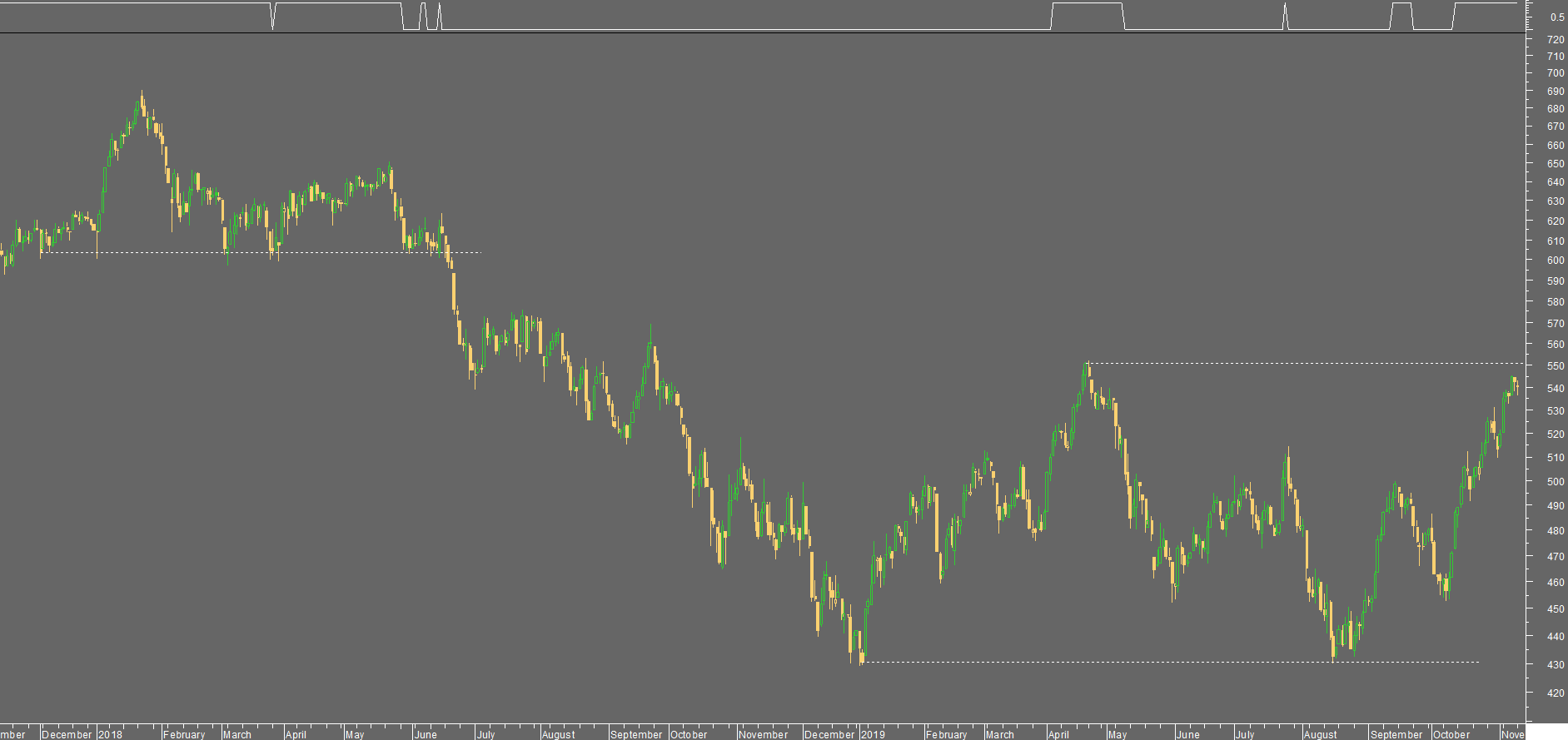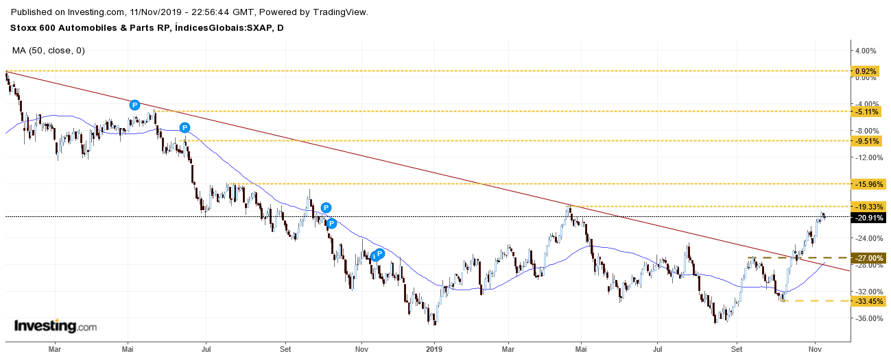 O Stoxx 600, continua num canal lateral (10%), desde Maio.