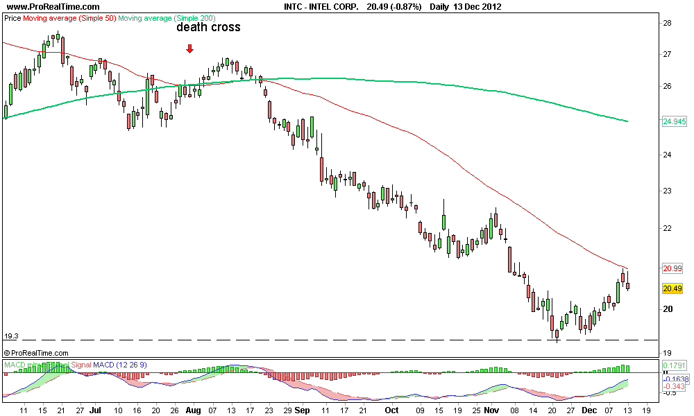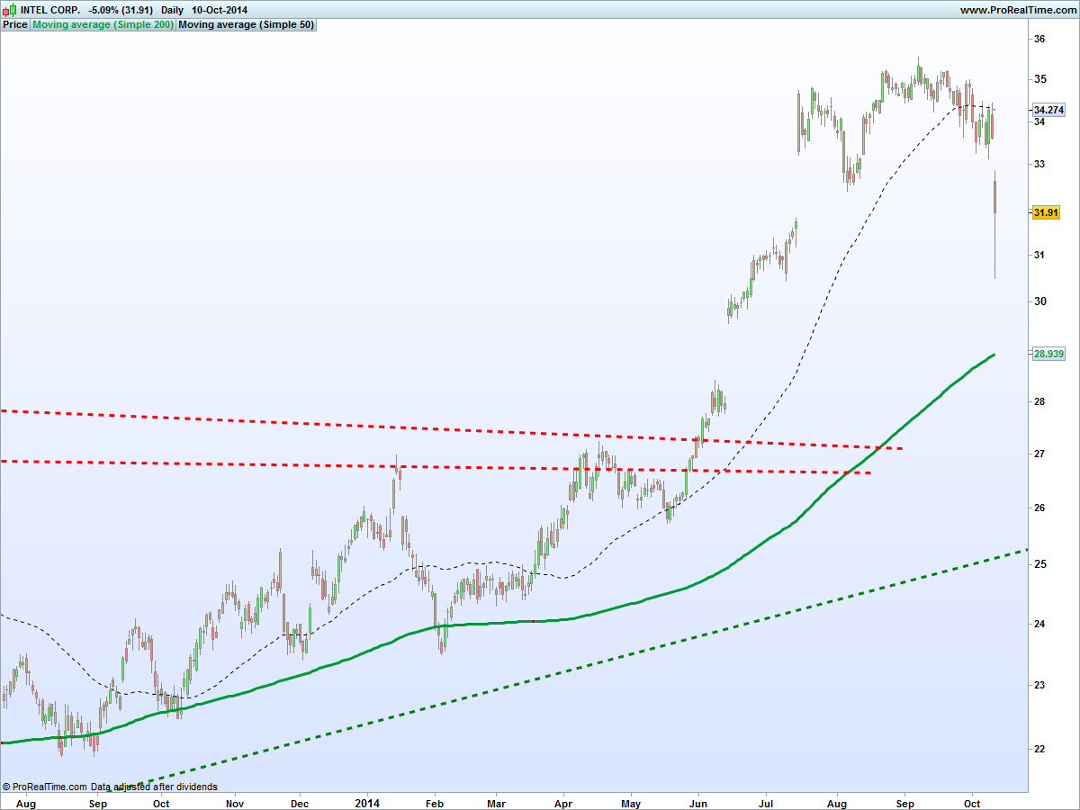 A Intel, na qual tenho uma posição longa (metade comprada perto dos máximos