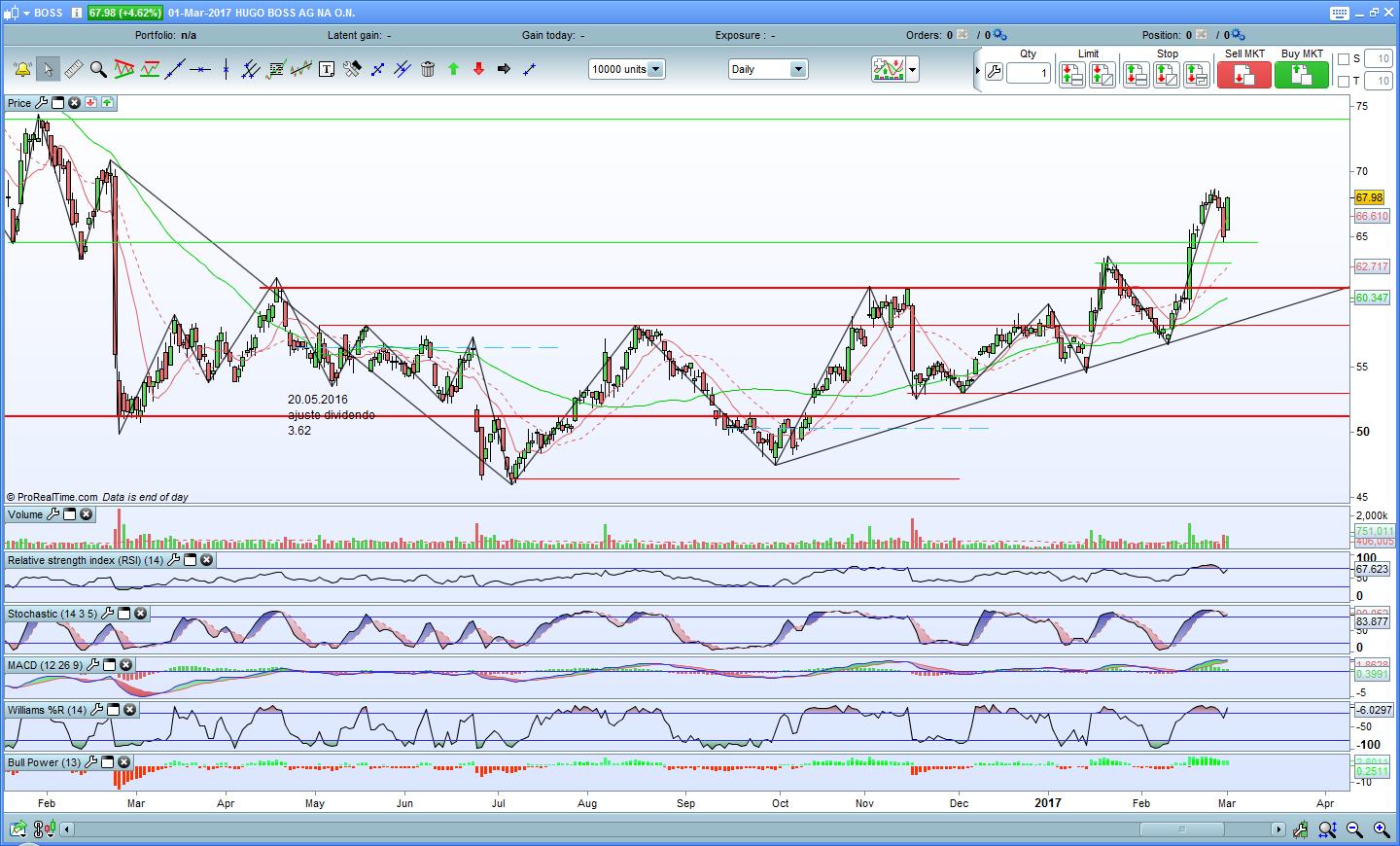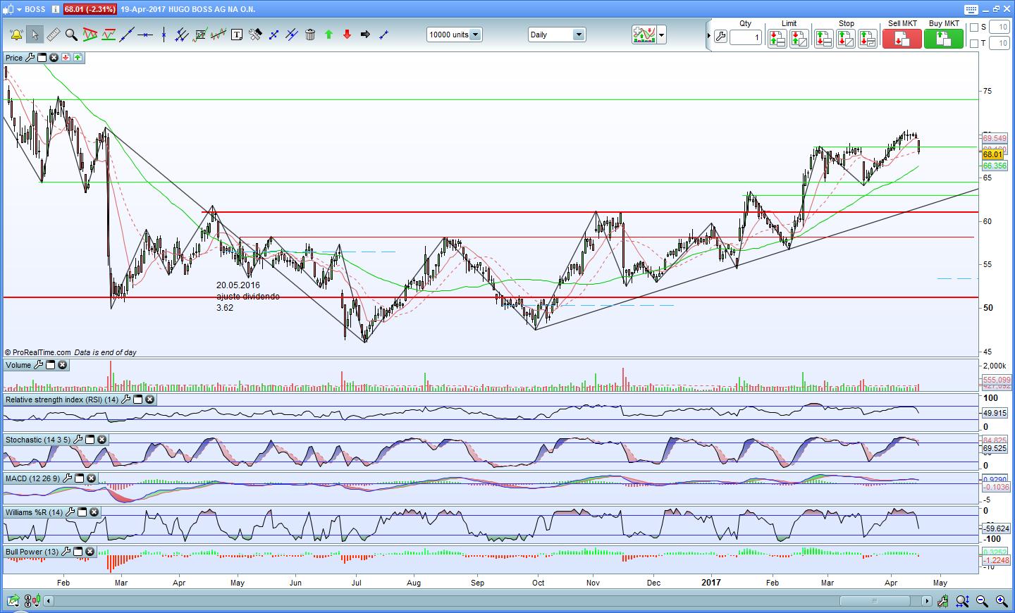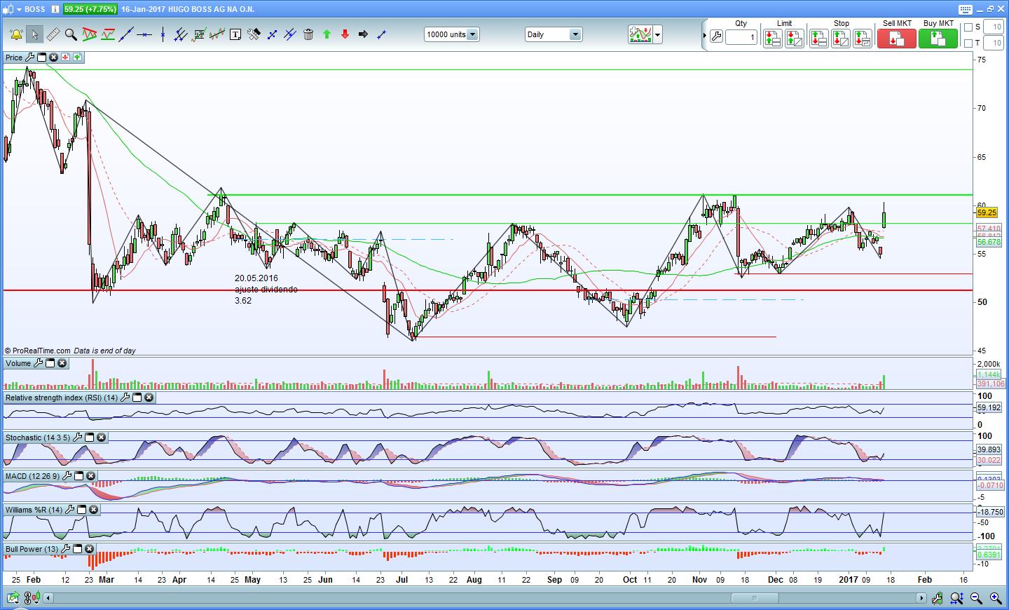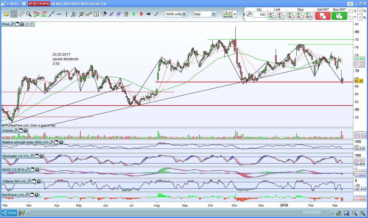 A Hugo Boss fez uma boa retacção e voltou para baixo da resistência. No entanto parece que o Stochastic está a querer inverter.