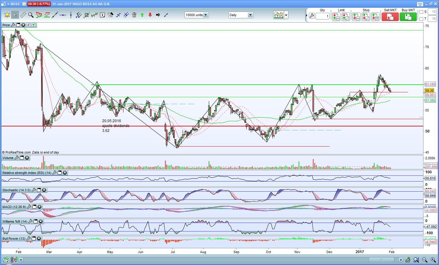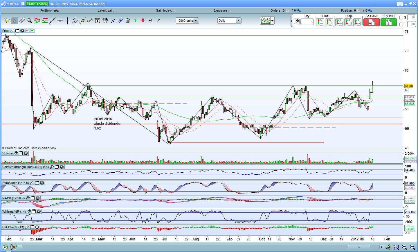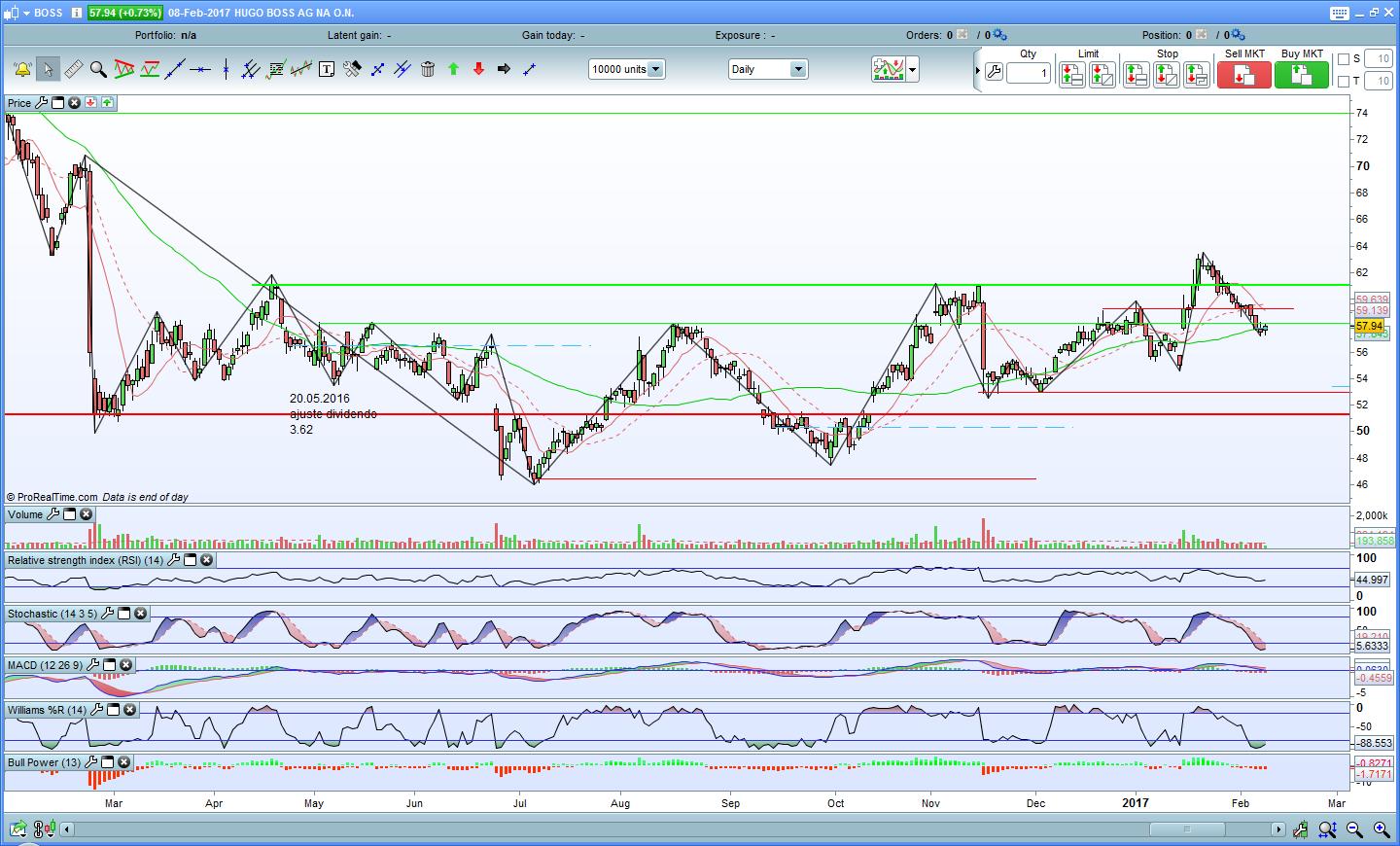 A Hugo Boss fez uma boa retacção e voltou para baixo da resistência. No entanto parece que o Stochastic está a querer inverter.