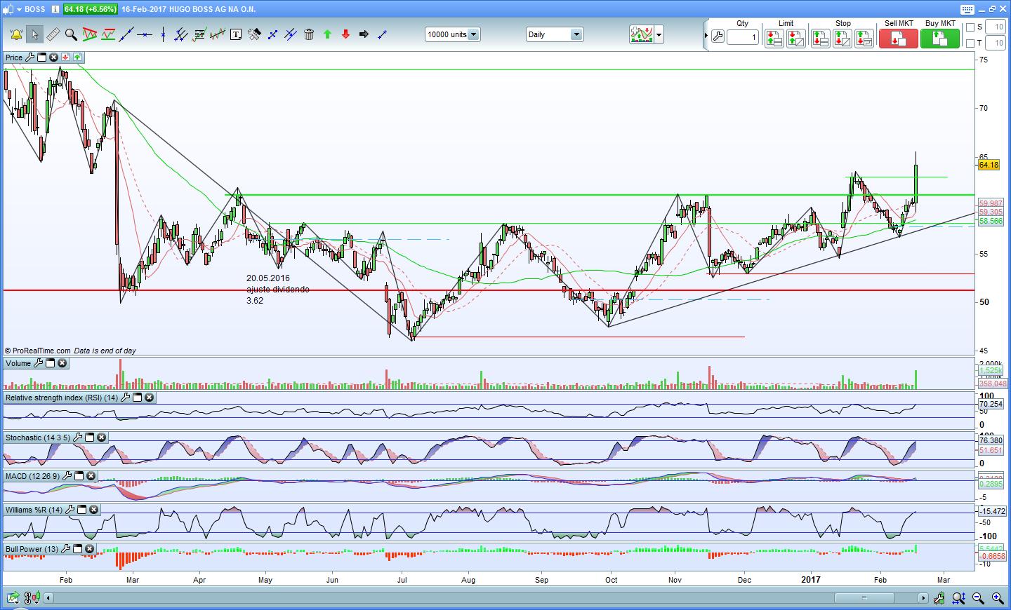 Passadas apenas algumas sessões e a Hugo Boss passou de novo a zona dos 61€.