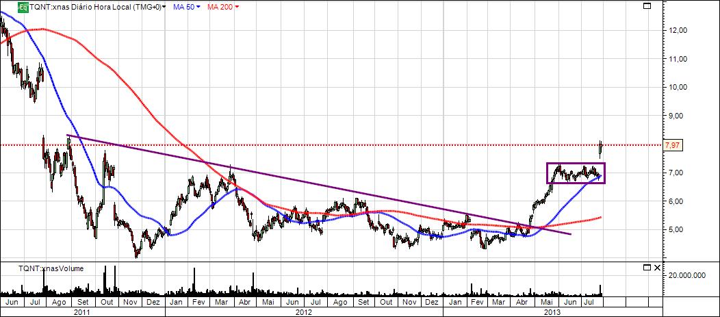 Esta semana houve lugar a um movimento bastante importante para definição da tendencia da TQNT: O breakout para norte à zona de indefinição em que se encontrava nos últimos 3 meses. E com volume.