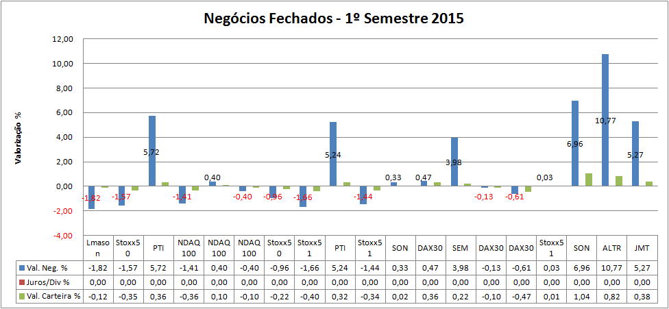 Relativamente ao negócio da JMT é importante referir que para além da ausencia, também equacionei uma correção nos mercados europeus, até ao momento essa correção ainda não aconteceu e apesar dos indices estarem a lateralizar (2 últimas semanas - ver DAX), ostitulos mais fortes continuaram a subir - caso da JMT e dos restantes em que entrei nos últimos meses.