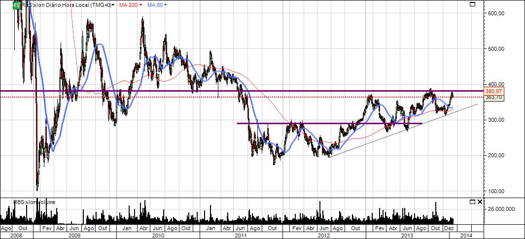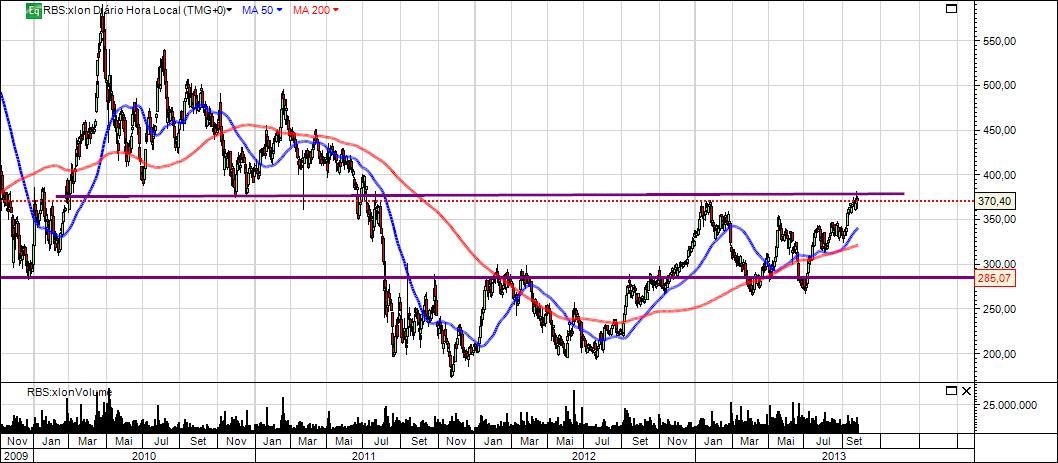 O título encontra-se ( finalmente ) perante uma possível inversão da tendencia de médio prazo. Está junto à resistencia das 300 Libras. Este valor foi suporte no ínicio de 2010 e resistencia no inicio deste ano.