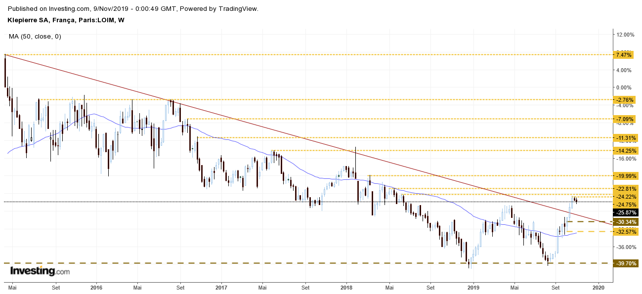 Esta cotada do índice de segunda linha francês está posicionada sobre uma forte resistencia que a tem impedido de subir desde 2008.