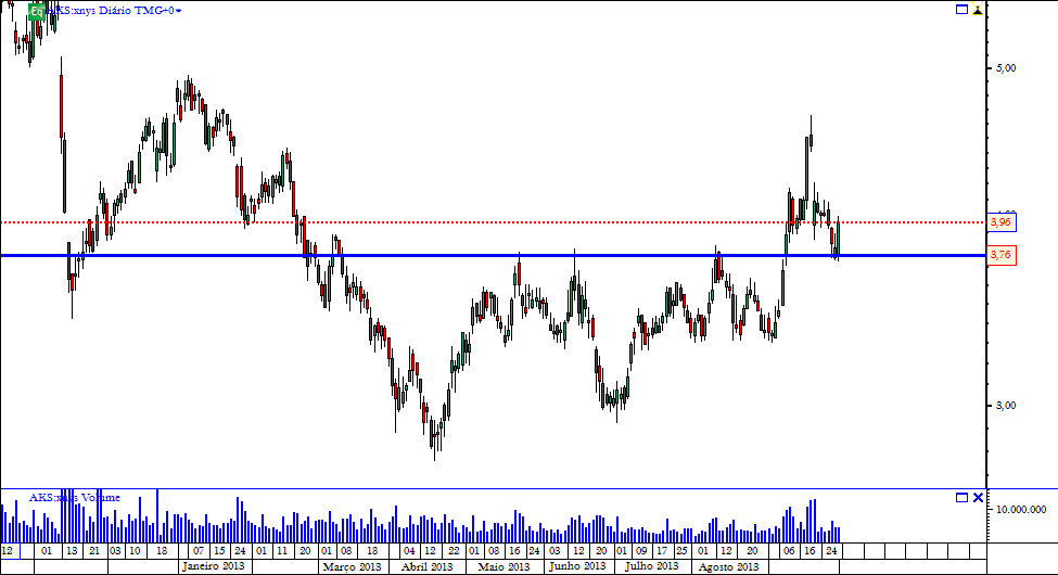 A Portucel também estará em breve a fazer o reteste ao suporte dos 2,9-2,95:
