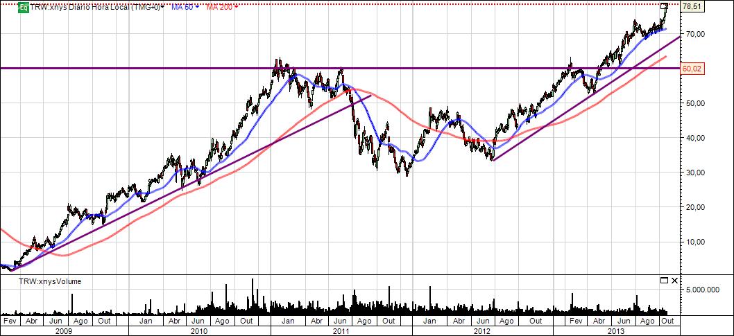 A TRW teve nos anos de 2009 e 2010 valorizações fantásticas, muito devido também a uma grande depreciação que teve no bearmarket de 2008.