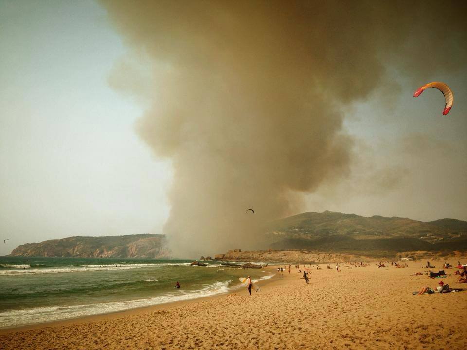 O maior incêndio é na zona do Caramulo e o fumo é arrastado pelo vento para sul e sudoeste. Neste momento em Cascais vê-se perfeitamente o fumo no ar e cheira a queimado.