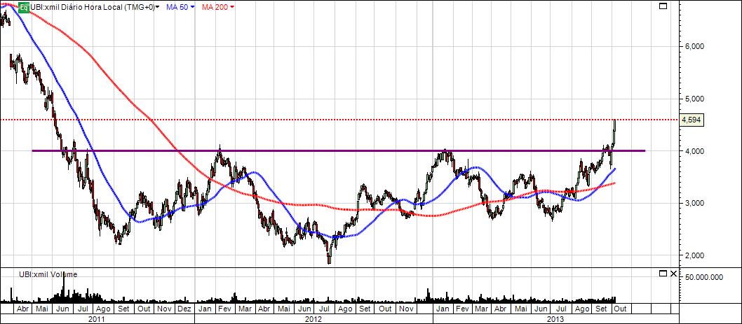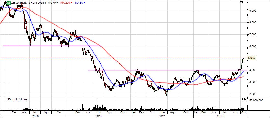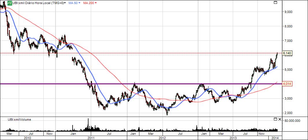 A julgar pelo gráfico de longo prazo, o UBI BANCA está bull em todos os espaços temporais. Quebrou uma LTD de 6 anos e ressaltou no re-teste. Está perto do suporte, e juntando tudo isto, penso que posso afirmar que está (aparentemente) num excelente ponto de entrada longa.