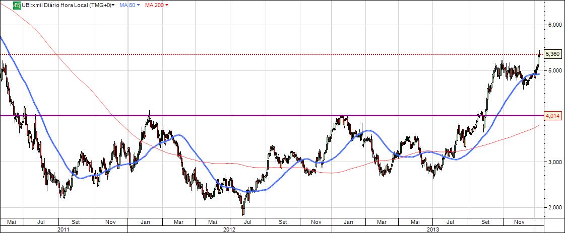 Devido a inclinação da subida, abertura de posição nestes valores poderão estar sujeitos a drawdowns bastante significativos.