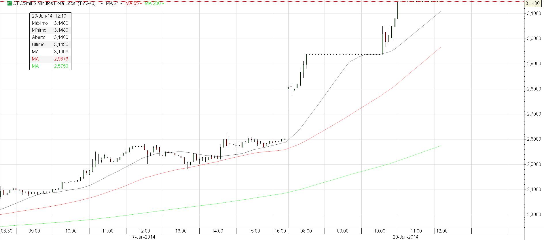 Está aqui num espicha encolhe metida no retângulo, é agora que vem o salto? Será bom porque esta é a única posição em euros que possuo e demasiada pesada para ser em euros numa única posição que deve ser divida em duas, em euros. Essa foi adquirida dentro da politica de non-stop position long term 2016 Price Target, sendo assim mantem-se a estratégia para a cotada. Fui no Gap up e escândalos dos administradores em excessos administrativos em LedearJets próprios da CTIC. Também nas minhas pesquisas nos meios que todos nós utilizamos há um comportamento de silencio ou maior discrição no mercado com pouco marketing sem demasiadas atenções. Hummmm... :-k Autorizados a circular na Europa, Inglaterra. As componentes do investimentos na CTIC entre outras está a prioritária BAXTER com a maior participação numa alternativa da CTIC ser totalmente afixada ao portfólio da Baxter? Oh pá deixa de conversa e vamos ver o gráfico, quero é um Gap up, mas o mercado é quem manda. Aqui também há um fenómeno de datas: - em todos os momentos em que o mercado está em baixa, com problemas por isto ou aquilo, os comunicados CTIC publicam-se nessa coincidência de datas. Todos foram publicados deste janeiro nas mesmas circunstancias de mercado. É a agenda. (foi apenas uma curiosidade)