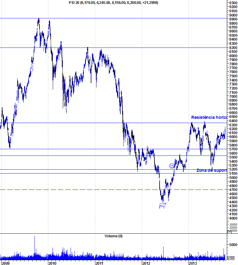 Estamos num patamar de grande lateralização e penso ser este o caminho dos próximos tempos. Mesmo rompendo a resistência não me parece que a super euforia surja.