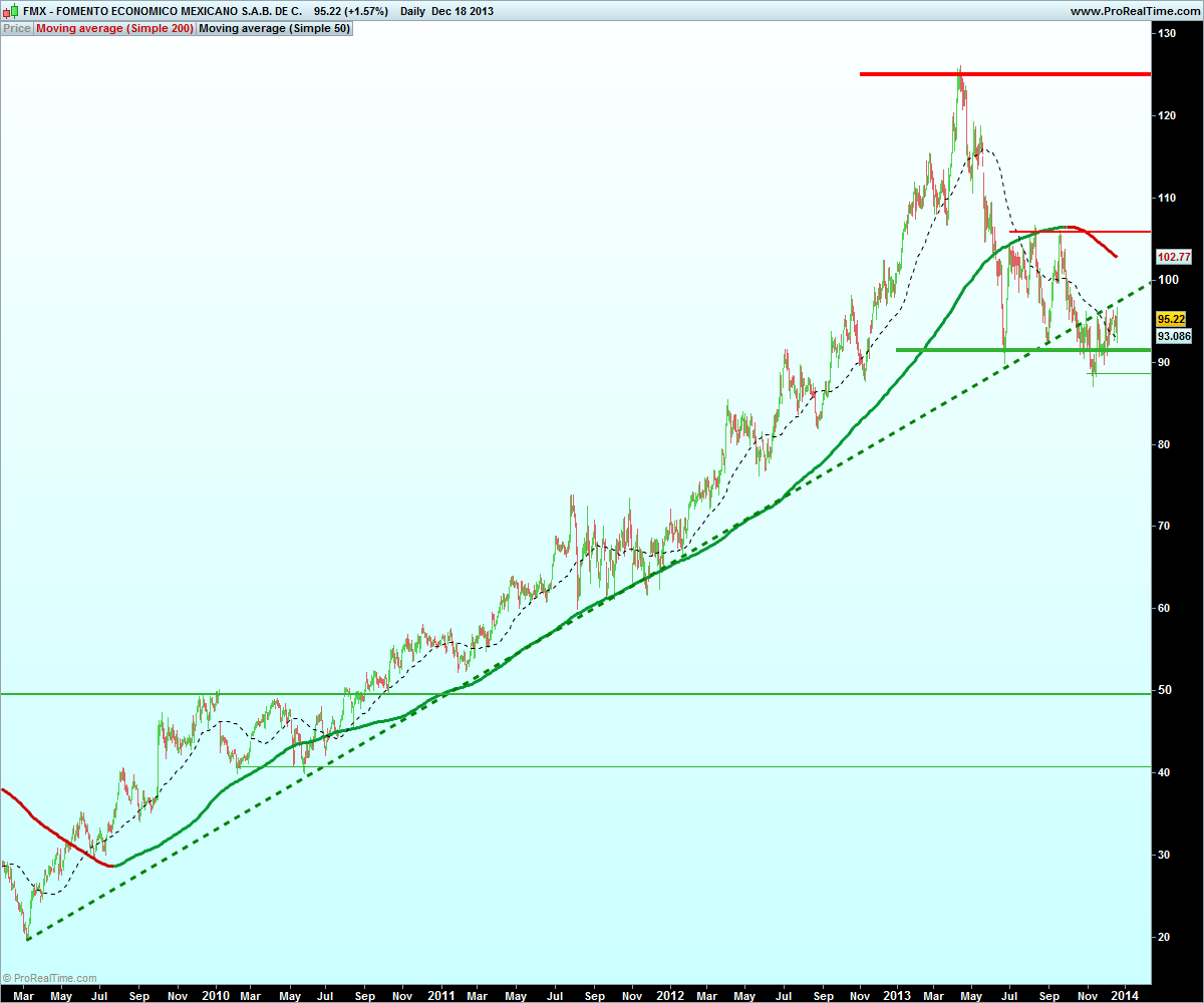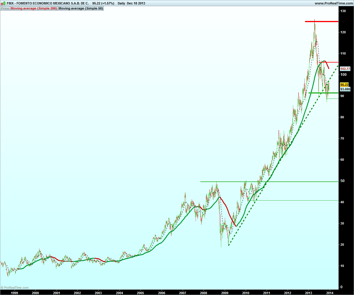 Fomento Economico Mexicano SAB de CV (FEMSA) is a Mexico-based holding company engaged in the beverages industry. Through its subsidiary Coca-Cola FEMSA SAB de CV, the Company is active in the production and distribution of a variety of non-alcoholic beverages, bottled water and still beverages such brands as Coca-Cola, Fanta, Sprite, Powerade, Delaware Punch and other trademark beverages of The Coca-Cola Company in Mexico. Through FEMSA Comercio SA de CV, it operates the OXXO convenience-store chain in Latin America. The Company operates in a number of Latinamerican countries and in Philippines.