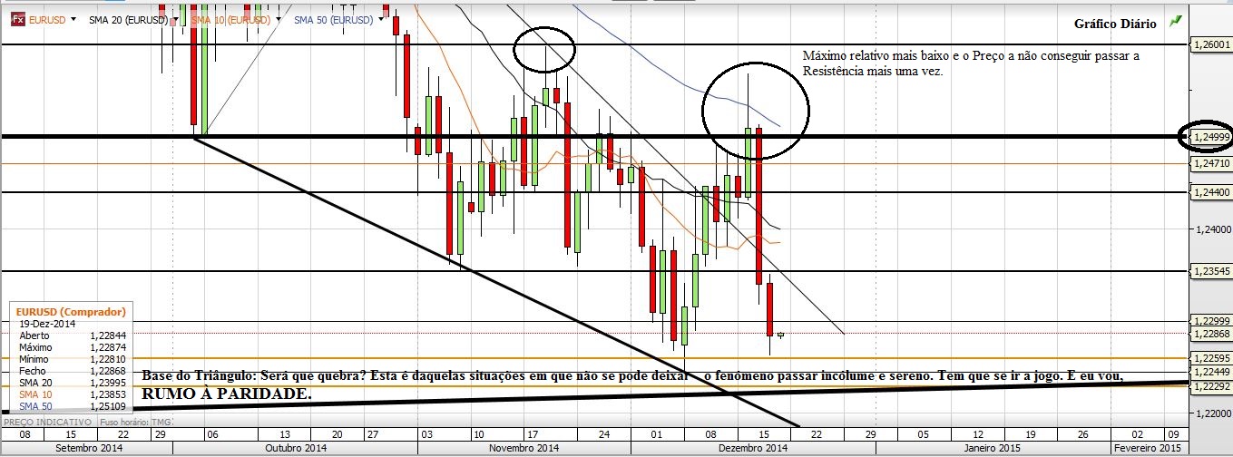 Mas há tendências bem definidas. Petróleo e EUR/USD voltaram a repetir mínimos mesmo com volumes de negociação próprios desta época do ano. Há margem para continuar a tendência ? Seguramente que sim, mas é bem melhor esperar por Janeiro, até porque há situações a ter em conta, como a capacidade dos mercados continuarem em alta (os principais índices acionistas, que subiram em contraste com os Emergentes e os submergentes) e a questão da fuga para a qualidade que se verifica na renda fixa, sobretudo nos títulos soberanos do Japão, Suíça ou Alemanha, a qual começa a sinalizar um grau de medo ou, outra hipótese, sinalizar estagnação.