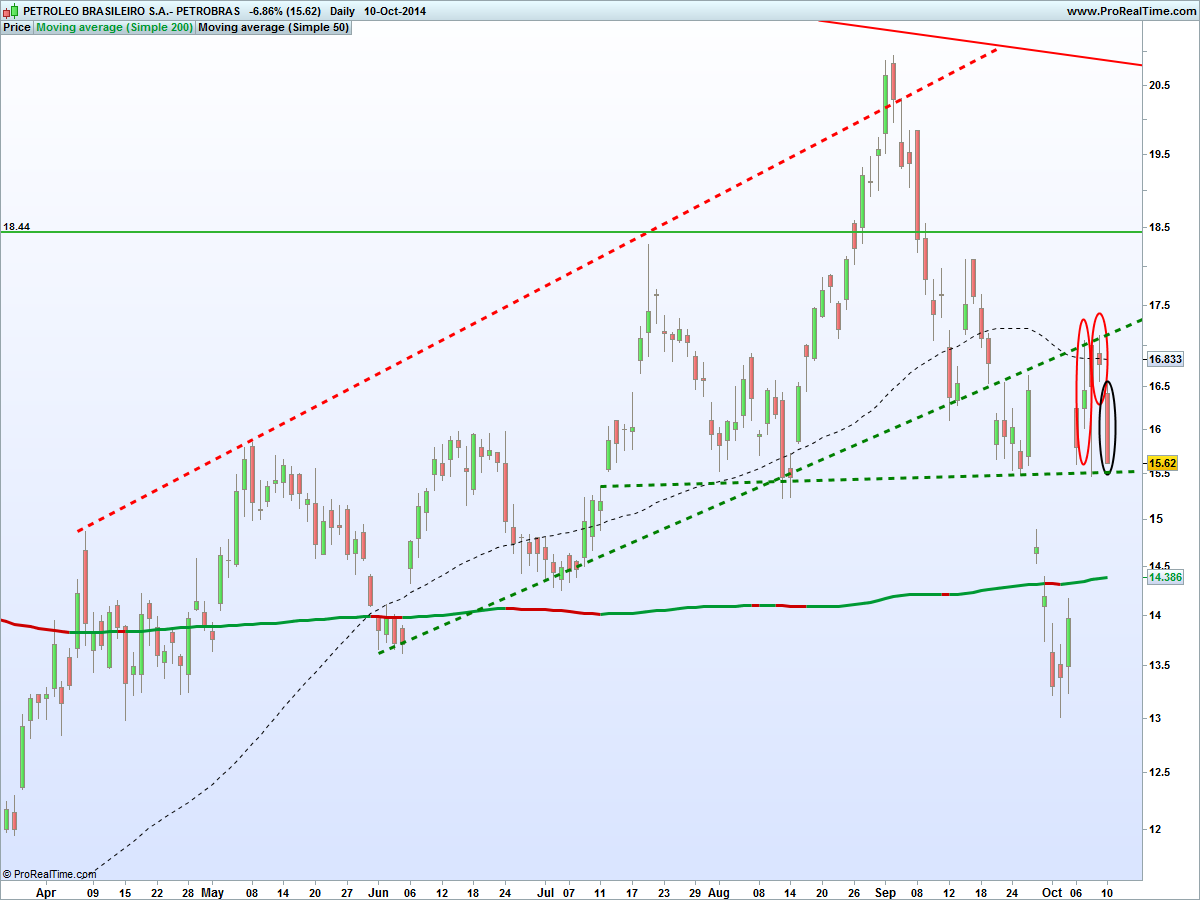 Hoje a ordem comprar para fechar na PBR foi atingida logo no inicio da sessão, originando mais valias interessantes (+3,4%) para um trade de 2/3 dias.
