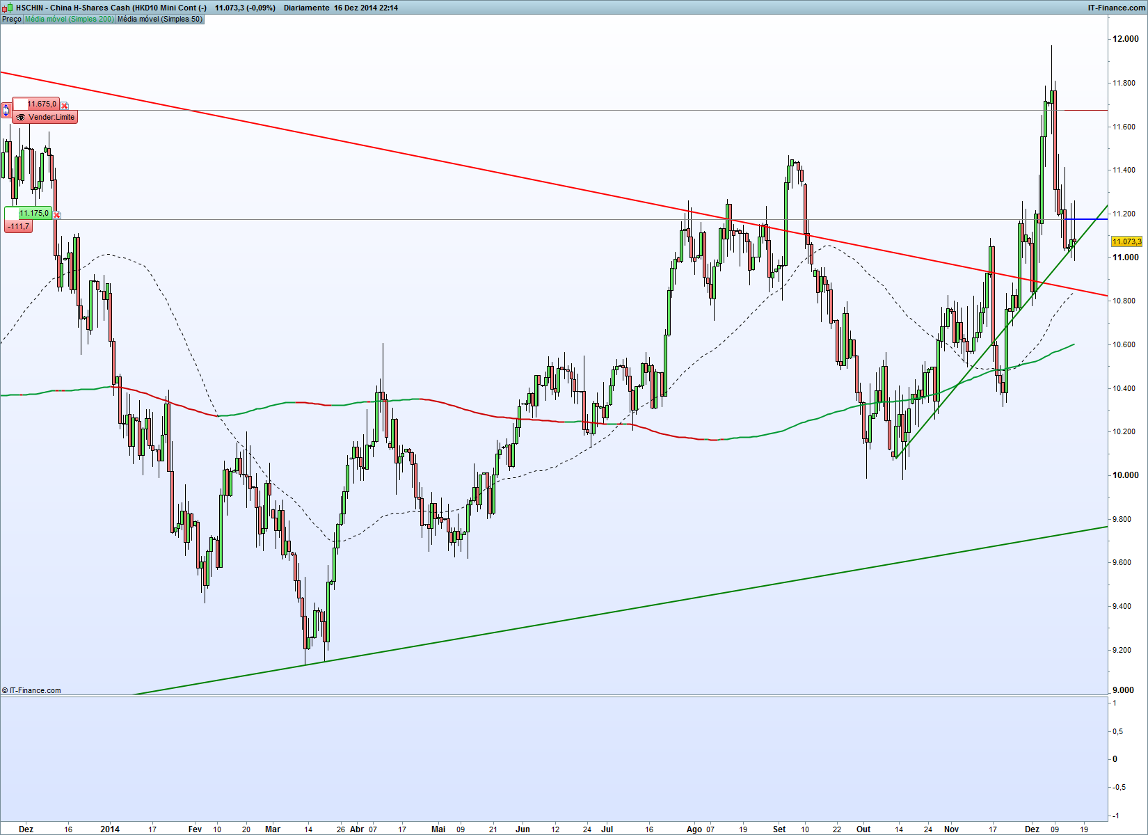 Abertura de duas novas posições, uma longa na China H-Shares (aos interessados aconselho ver o gráfico semanal deste índice com a devida atenção) e outra curta na SSYS com os respectivos valores de entrada e stops no gráfico.