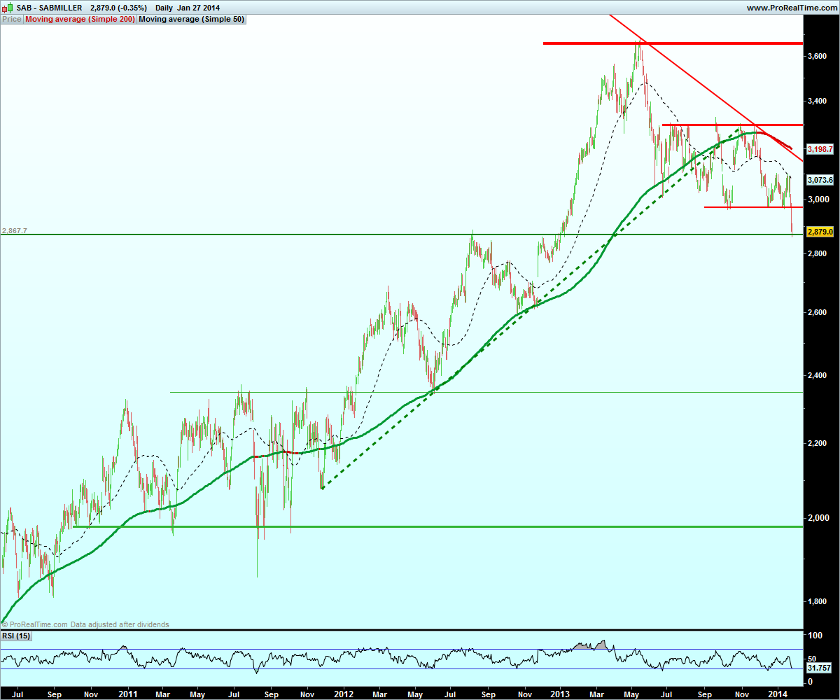 A acção em questão é a SABMiller. Pertence ao sector das Bebidas e está cotada na LSE.