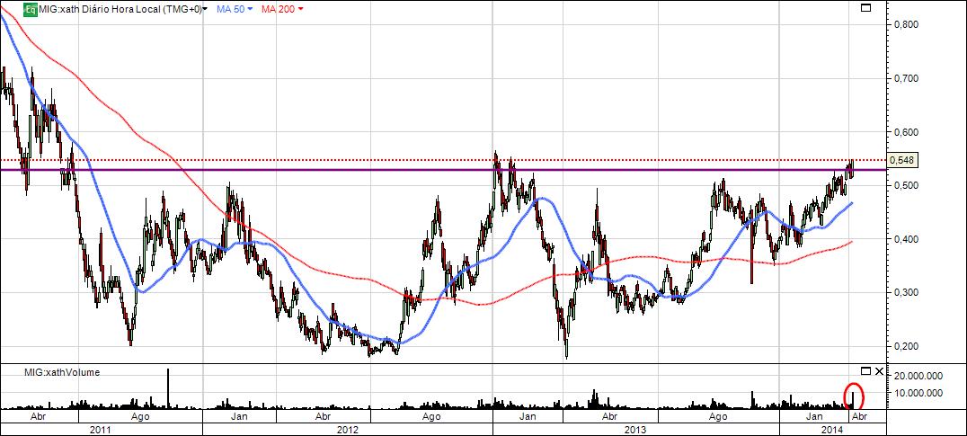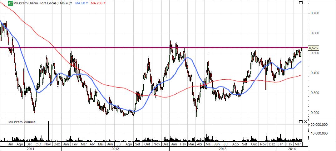 A zona dos 0,50€ ( está ao preço da bica ), tem travado as intenções dos touros nestes últimos anos. Esta é, na minha leitura, a 1ª grande barreira bull/bear do título.