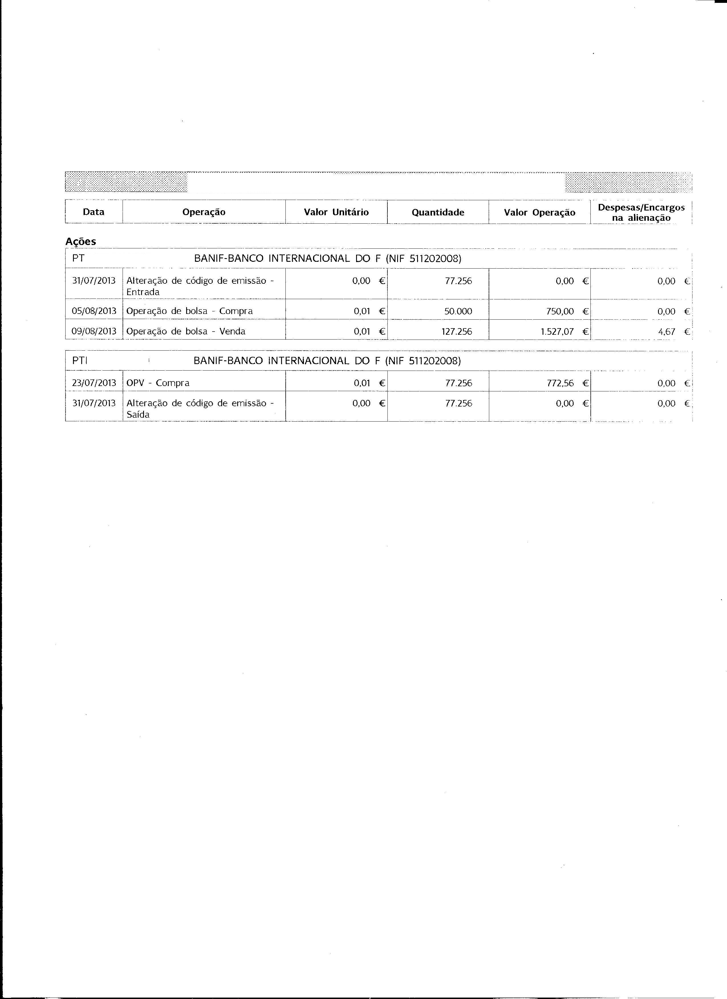 1-Acções compradas no aumento de capital 77.256 a 0,010 o que faz total de 772.56€