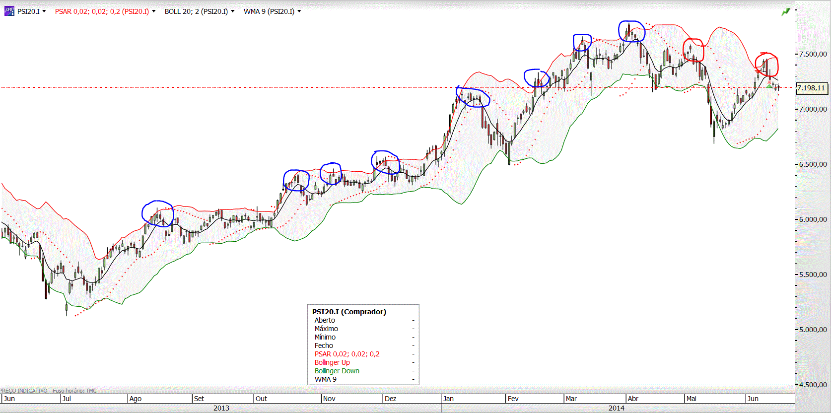 Observa o PSI aqui na casa dos 7200 pontos e verifica que o índice está em modo bull.