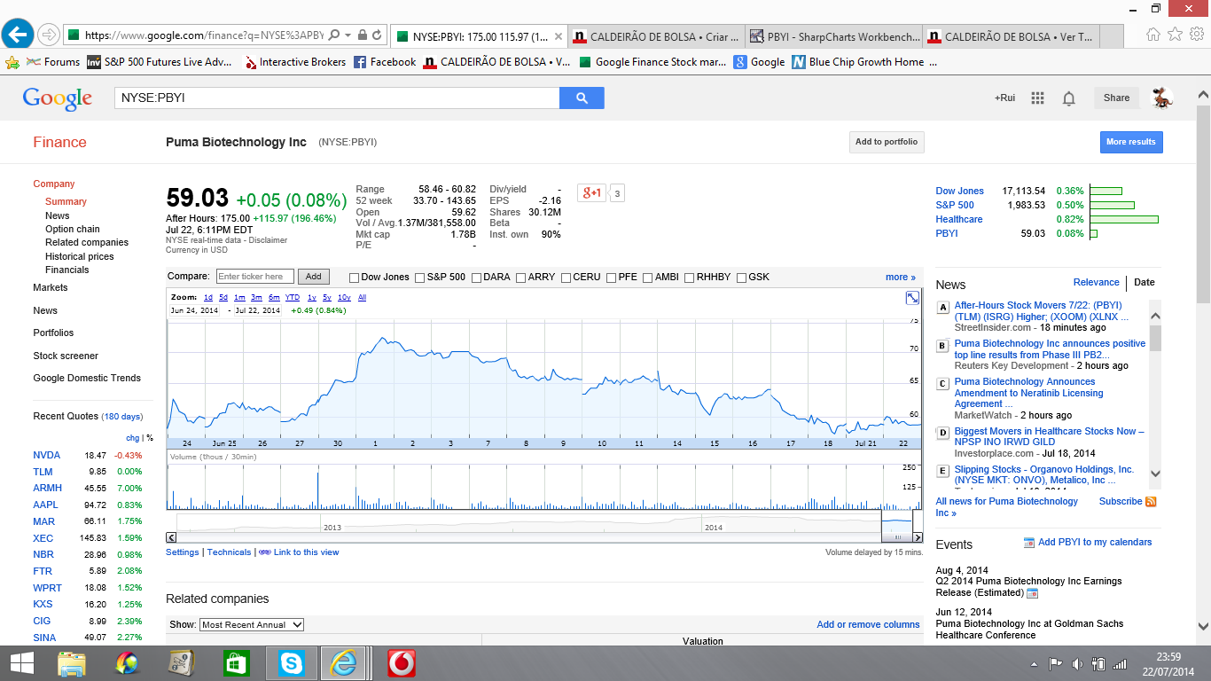 E atenção que é preciso algum cuidado, ainda faltam também os testes de segurança do medicamento que caso levantem problemas lá vai a cotação mandar um trambolhão, esses testes já foram lançados pela a Puma e estão a espera de aprovação, a puma afirma que os únicos efeitos secundários foi diarreia em cerca de 30% das 2800 mulheres que participaram nos testes clinicos, mas em principio isso não levantará problemas.